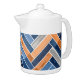 Herringbone Pattern in Navy Blue and Orange Teapot