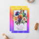 A bouquet of rainbow colored roses decorate the front of this card
