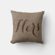Hers Burlap-Look Rustic Wedding Keepsake His/Hers Throw Pillow