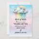 A stunning cloud and rainbow of showers on a blue to pink cloudy sky background.