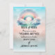 A stunning cloud and rainbow of showers on a blue to pink cloudy sky background.