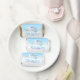 Cute baby shower stork delivering a baby boy. Ideal for a special baby boy showering party or event. Personalize with your mother to be name and wording. Currently reads A baby boy is on his way Thank you for honoring mother-to-be Danielle MacDonald. Original watercolor whimsical art and design by Sarah Trett for www.mylittleeden.com
