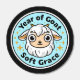 features a circular design with a cute, cartoonish goat in the center, surrounded by a light blue background and sparkles. Around the goat, the text reads "Year of the Goat" at the top and "Soft Grace" at the bottom. The overall design is playful and colorful.