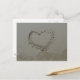 Ein in Sand gemaltes Herz und eine Welle kommt