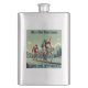 The product is a good size and came exactly as it was pictured. The lid is not attached to the flask, which could be dangerous on drunken nights... The print came out surprisingly well and looks very sharp. Would definitely recommend.