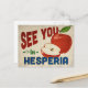 A charming Hesperia California vintage travel postcard featuring a lovely red apple, along with fun retro style text that says, "See you in Hesperia"