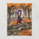 Hester is a curious young girl. She loves spending most of her time outside, in nature, observing and learning. Here she is out and about on a crisp, cool fall morning. The sun is just high enough in the sky to start burning off the nightly autumn mists and the leaves have just begun to drop from the trees. Adorned with moon phase charms on her skirt, damask owls on her stockings, and a celtic knot leatherwork purse, Hester has taken on a bit of a change from when I first started drawing her nearly 10 years ago. She is, of course, also accompanied by her boot wearing bats and cats! Two of the cats are modeled from my own fur family past and present. Pluma the Persian and Buttermilk Biscuit the tortie/flame point Siamese.