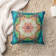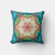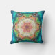 Hex Mandala Blue Green and Pink Throw Pillow