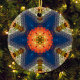 Hex Mandala Blue Orange and Red Ceramic Ornament