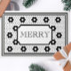 This classy cute black and white faux tile doormat with a green gray border is perfect for any home this Christmas. Its clean lines, simple colors, and vintage pattern are timeless and versatile. Designed on a rubber based mat that is durable and easy to clean.