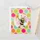 A happy honey bee with his scoop of honey. A cool hexagon hive shaped background in vintage colors of pink, blue, orange and green.