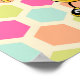 A happy honey bee with his scoop of honey. A cool hexagon hive shaped background in vintage colors of pink, blue, orange and green.