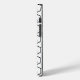 This phone case has a mid-century modern design made of hexagons chained together with a circle on a peg inside each.