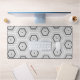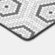 "hexagon tile desk mat", "hex tile deskmat", "penny tile protector pad", "hexagonal grey and white", "black and white monochrome", "geometric pattern design", "vintage retro modern symmetry", "symmetrical shapes mosaic tiles", "contemporary simple tiled art", "stylish neutral gray tiling"