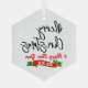 Make this holiday season unforgettable with our Merry Christmas Hexagon Personalized Glass Ornament. Perfect for Christmas events, Bar Mitzvahs, weddings, and more, this unique glass ornament can be customized with your artwork, family photos, or a special message. Its premium quality and elegant hexagon shape make it a beautiful addition to any decor. Ideal for newlyweds, new parents, and graduates, this ornament adds a personal touch to your holiday celebrations. Includes a white ribbon for easy hanging. Optional gift pouch available.