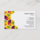 An attractive modern business card template decorated with a hexagons motif each segmented and in a palette of five harmonious colors and rotated. The same motif is repeated on the reverse however is arranged to the left. Company name and business type on the front aligned to the left with name, position and other contact details on the other side aligned to the right. This card can be customized in a variety of different ways and is suitable for many type of business.