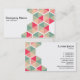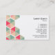 An attractive modern business card template decorated with a hexagons motif each segmented and in a palette of five harmonious colors and rotated. The same motif is repeated on the reverse however is arranged to the left. Company name and business type on the front aligned to the left with name, position and other contact details on the other side aligned to the right. This card can be customized in a variety of different ways and is suitable for many type of business.