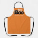 Prepare your spook's goodie bags in the kitchen wearing this Hey Boo Orange And Black Halloween Personalized Apron. It is modern minimalist designed on customizable orange apron and the text is "hey boo" in big bold white and black distressed lettering. Name is below the text in simple white letters. You can choose your very own custom text if you wish or delete.