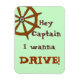 Funny cruise magnet with a ship's wheel says "Hey Captain - I wanna DRIVE." (Every true seaman knows the captain doesn't drive the boat - he STEERS the SHIP)