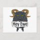 Hey Ewe shows a ram saying the words "Hey Ewe" to the viewer. Ideally a sheep I guess. Humorous sheep pun for cool rams.