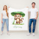 A cute and cheerful baby monkey standing on two legs, holding a big green leaf like an umbrella to stay dry in the rain. This adorable cartoon design captures playful innocence, rainy-day vibes, and nature-inspired charm. Perfect for animal lovers, cute illustration fans, kids, and anyone who enjoys cozy rainy moments.