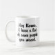 Humorous text announces to the universe some unfinished business... Customize for a hilarious gift idea for all your friends and relatives who know who you’re talking about!