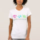 My overall review is that the T-shirt is nice, it fits true to size however the font is significantly smaller than advertised and you can't read it. The printing is unreadable and there is a strain to read it. It does not look like the advertised product. Maybe the shirt color is darker or a larger more visible font should have been used. Photos with and without flash and font is barely legible.