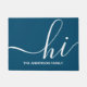 Hi Calligraphy Script Modern Navy Hello Personalized Doormat