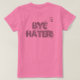 This Hoodie says "Hi Hater!" on the front. It also has a handprint on the upper left hand corner on the front. On the back it reads "Bye Hater!". This side also has a handprint in the upper left hand corner.