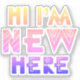 Hi I'm new here in whimsical colorful gradient font in shades of yellow, peach, pink and blue.