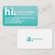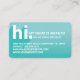 Make a great first impression and introduce yourself to potential clients with our "hi my name is" business cards. The design features "hi" in a modern typographic design with a diagonal text shadow. Stylish teal gradient adds a modern bold look. Personalize with your name, title and contact information. The reverse side is designed in clean minimal style with personalized monogram and social media handle.