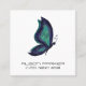 Modern hi tech butterfly wings in blue, green, purple low poly design. Hi-tech fantasy author business card with customizable text. Trendy technology polygonal butterfly.