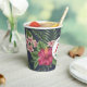 Classic and elegant seamless pattern design made of red Hibiscus flowers and leaves on dark background with three half transparent square tags for your text. Customizable 100th birthday party paper cup. You can easily change text (font, color, size and position), change transparency of the tags (copy or delete one of them) and change size and position of the background image by clicking the personalize or customizable button. Matching birthday paper napkin paper plate, Thank you favor box and other products. Don't forget the wholde collection of vintage floral patterns for birthday.
