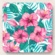 Watercolor pattern design with hibiscus flowers and palm leaves