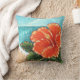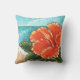 This 16" x 16" throw pillow features a Becky Schultea original acrylic floral painting, "Hibiscus by the Beach" which includes a tropical orange hibiscus flower and greenery beside a tranquil beach setting with turquoise waves breaking against soft tan sand.This pillow would add a colorful beachy touch to any part of your home or beach house, or would be a great gift for anyone who loves all things tropical and beachy!