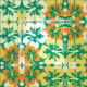 Pattern of hibiscus flowers in a pattern / background in Emerald, lemon sorbet, ivory white and orange colors.