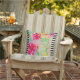 Black and White Striped Coral Hibiscus Flower Reversible Tropical Throw Pillow