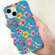 Hibiscus Flowers Flip Flops Pink Monogram on Blue Case-Mate iPhone Case