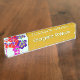 Identify yourself at work with this pretty hibiscus flowers name plate. Gold color, with an artistic floral design on one end. Use the template to add a name. There is no place for a title on this one. Her name is printed in pale mint text with a purple drop shadow. First and last name can also be over one another. Flower colors are red, purple and bright pink.