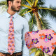 Hibiscus flowers tie for tropical themed weddings. Illustrated, floral pattern, in orange, pink and purple on a coral pink background. A perfect choice for the groom and /or groomsman.
