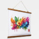 Radiating outwards from the flower and leaves are broad, sweeping brushstrokes or splashes of paint in a multitude of colors: fiery oranges and reds on the left, blending into yellows and bright greens, and then transitioning dramatically into a spectrum of blues and teals on the right. There are also striking pops of magenta and pink throughout the composition, especially on the far right and bottom left.