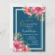 Hibiscus,Graduation Cap Blue Quinceañera Invitation