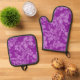 Hibiscus Pareau Distressed Hawaiian Violet Oven Mitt & Pot Holder Set