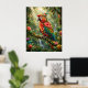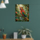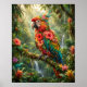 A vibrant hibiscus parrot perches proudly in a lush island garden where tropical color meets exotic elegance. Realistic parrot anatomy merges with hibiscus petals, glossy leaves, radiant feathers, and botanical textures in scarlet, coral, yellow, teal, and emerald tones. Palm shadows, warm ocean breeze, bright sunlight, and flowering branches create a joyful paradise atmosphere. This bold fantasy bird design brings energy and luxury to kitchens, sunrooms, beach homes, or gift collections. Perfect for parrot lovers, tropical decor fans, and colorful statement interiors.
