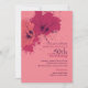 A modern design featuring hibiscus flowers in deep beery and peach colors against a grunge pink backdrop. Well-suited for any feminine celebration, garden party, luau, and more.