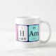Hicham spelled out as H I C H Am (Hydrogen Iodine Carbon Hydrogen Americium) on a mug for the scientist in you.