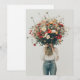 A person dressed in casual jeans and a simple white top holds an enormous bouquet of wildflowers that completely obscures their face. The large, colorful arrangement of daisies, poppies, and other vibrant blooms contrasts with the minimalist background and attire, creating a striking visual that emphasizes the beauty of nature. The scene exudes a sense of whimsy and serenity, as the flowers take center stage, symbolizing growth, life, and simplicity.