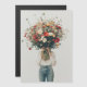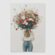 A person dressed in casual jeans and a simple white top holds an enormous bouquet of wildflowers that completely obscures their face. The large, colorful arrangement of daisies, poppies, and other vibrant blooms contrasts with the minimalist background and attire, creating a striking visual that emphasizes the beauty of nature. The scene exudes a sense of whimsy and serenity, as the flowers take center stage, symbolizing growth, life, and simplicity.