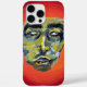 This abstract iPhone case features a striking emotionless face in calming green and blue tones, contrasted against a fiery red and orange background with a radiant yellow highlight. The bold color combination creates a captivating balance between intensity and tranquility, making it a unique statement piece. Perfect for art lovers who appreciate expressive, modern designs.