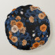 Hidden in the roses, orange and blue round pillow
